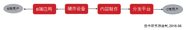 根据投中研究院整理,将VR产业分为4大块内容,分别为硬件设备、内容制作、分发平台以及B端应用。目前国内硬件设备是主要变现来源,同时B端应用逐渐走入实际工作,而内容制作和分发平台仅仅只是刚刚起步,但线下体验店和主题乐园已经是较为成熟的商业模式。
