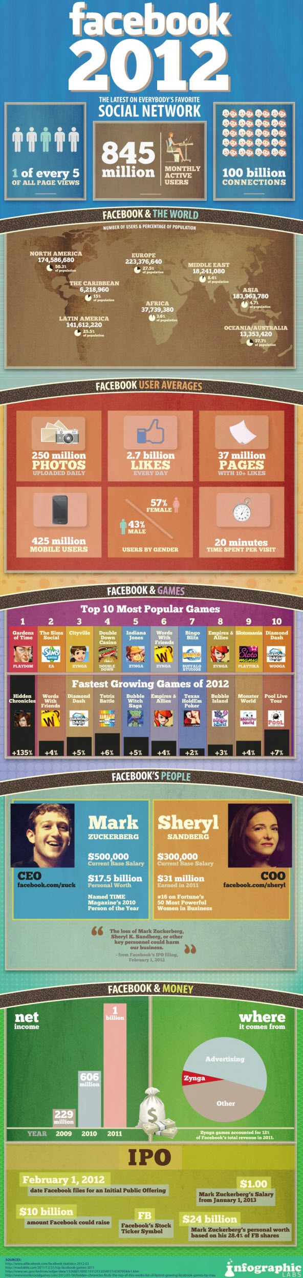 8. 收入来源:一半收入来自广告,12%来自Zynga。