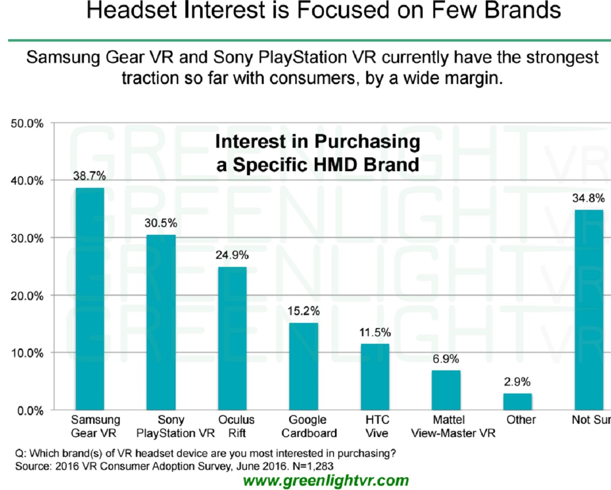 该公司还在其2016年虚拟现实消费者研究报告指出,和去年十月份相比,如今消费者对虚拟现实的兴趣有所下降。调查同时显示,消费者首选的虚拟现实设备是三星的Gear VR,其次是索尼的PlayStation VR。