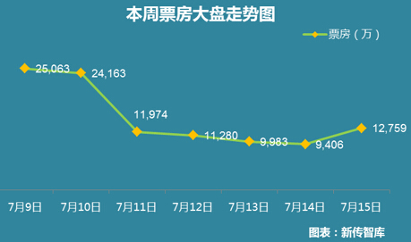 相较去年,今年7月首周的票房成绩持平,但由于没有出现优秀作品,第二周的票房表现如预期那样陷入了低迷的困境。本周单周票房大盘10.46亿,从走势图中可以看出,周末(7月9日、7月10日)是票房市场的高峰,后四天票房市场较为平稳低迷,八部国产影片在周五(7月15日)的扎堆上映也没能唤起观众的观影热潮,票房没能实现较大增长。对比去年同期的市场状况可以推测:今年暑期档成绩将很难达到预期。去年7月15日,《大圣归来》已经完成了口碑逆袭,吸金能力日渐增强,《捉妖记》《煎饼侠》等已然展露了票房实力。无论是口碑还是票房,今年的暑期档都难以望其项背,从未来的院线片单上看,今年暑期档也难以再现2015年的盛况。