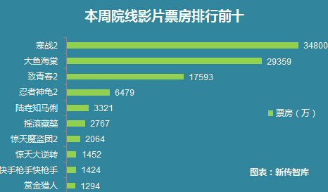 本周进口片几乎要销声匿迹,仅靠《忍者神龟2》、《惊天魔盗团2》等零星影片支撑。