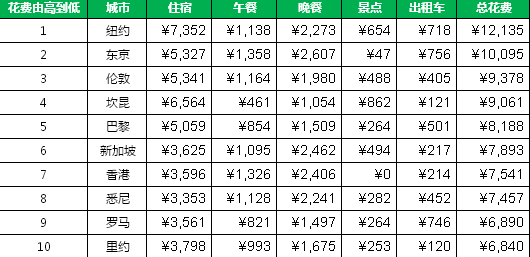 ✐ 开房纽约最贵;吃饭、出租车东京排第一;香港景点几乎免门票