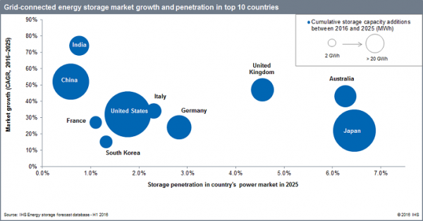 根据市场调研机构 IHS 的一份最新报告显示,全球能源存储市场预计将会翻一番,因为家庭和企业利用储能电池补充了太阳能和其他可再生能源系统的不足。 报告指出,在接下来的 10 年中,锂离子电池将成为主流的储能技术,预计将于 2025 年占据全球储能市场的 80%。仅今年一年,全球能源存储市场就有望翻倍,容量将由 2015 年的 140 万千兆瓦时增至 290 万千瓦时。