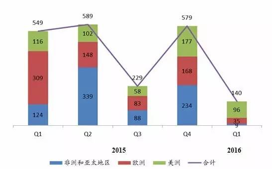 2016年第一季度,全球开放式基金净销售额为1390亿美元。第一季度全球股票型基金现金净流入为520亿美元,而2015年第四季度现金净流入为1810亿美元。