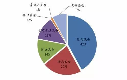 2016年第一季度末,全球开放式基金资产的42%为股票型基金,22%为债券型基金,14%为混合型基金,13%为货币市场基金。从区域分布来看,2016年第一季度,全球开放式基金资产51%的份额分布在美洲,36%的份额分布在欧洲,13%的份额分布在非洲和亚太地区。