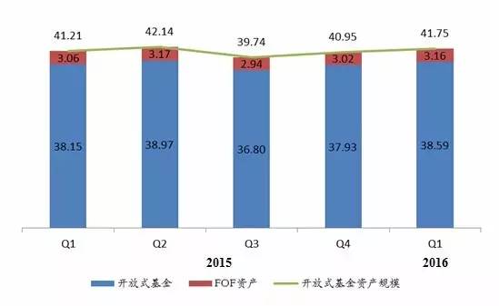 2016年第一季度末,全球开放式基金(不包括FOF基金)资产规模约为38.59万亿美元,环比增长1.7%。与2015年第四季度现金净流入5790亿美元相比,2016年第一季度全球开放式基金现金净流入达到1390亿美元。