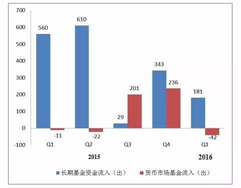 全球货币市场基金在2016年第一季度净流入了2360亿美元现金后,于2016年第一季度净流出420亿美元。