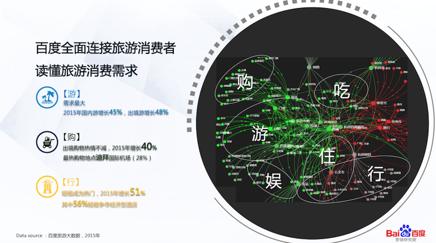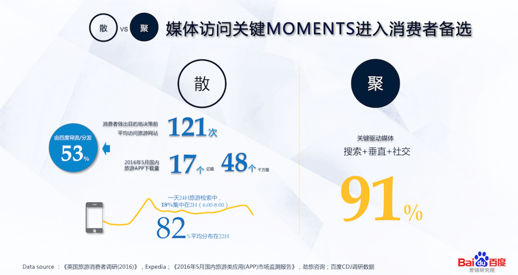 《报告》指出,百度平台汇聚数以亿计的旅游消费者,百度商业生态研究院与各个旅游链条上的“玩家”共建生态,我们的移动时代旅游消费者决策路径研究绝不仅仅是百度平台,而是覆盖了旅游垂直媒体、社交媒体等全网行为。