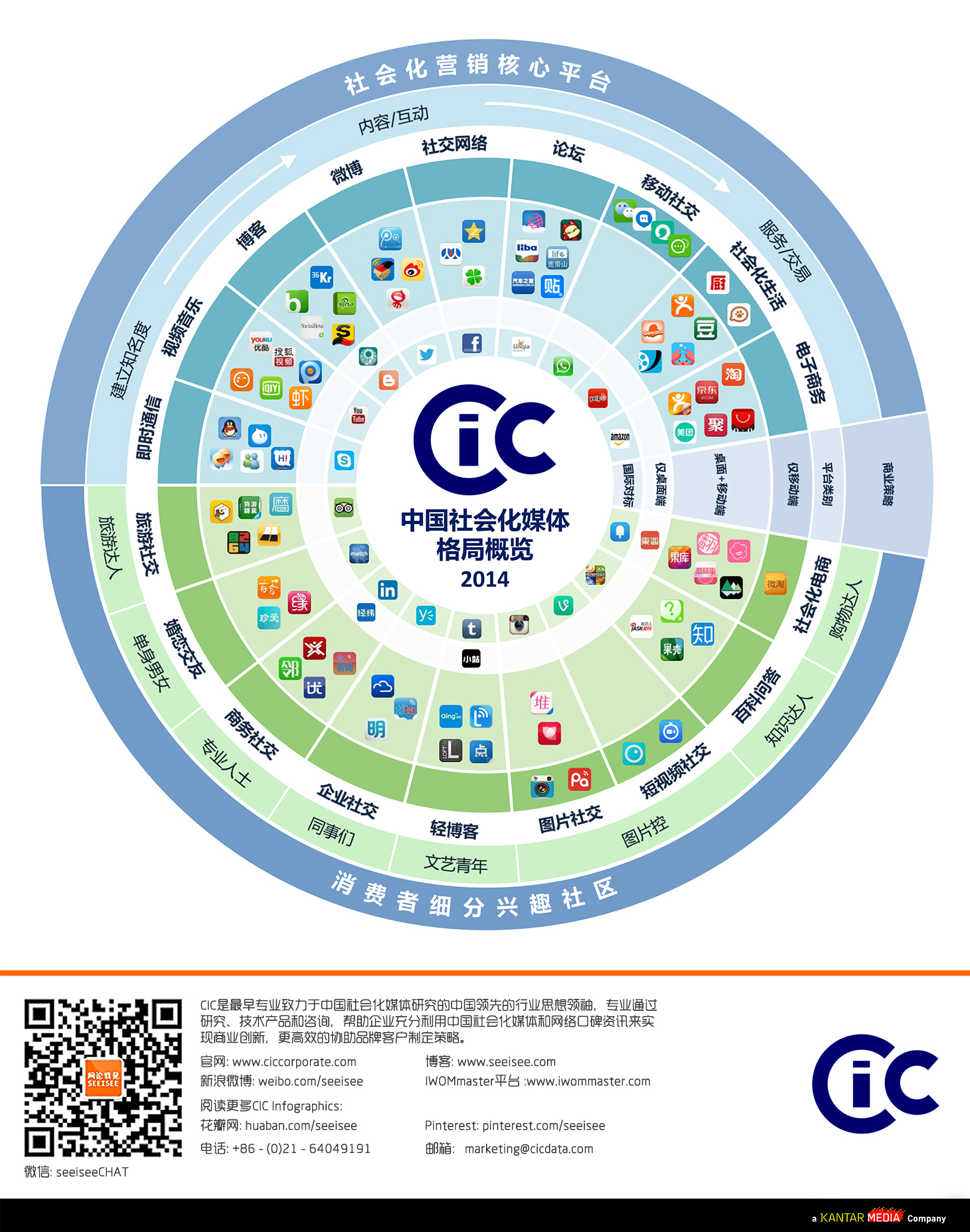 Kantar Media CIC 正式发布了「2016年中国社会化媒体格局图」,自 2008 年以来,Kantar Media CIC 持续发布业界权威的中国社交媒体格局图,致力于为品牌提供一个深刻而全面的中国社会化媒体格局解析,从而帮助其更好地实施商业智能解决方案。