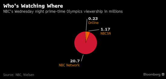 两个月过去,Facebook的财报好好的,里约奥运会的状况倒是和Steve Burke的噩梦差不多——黄金档的收视率相比上届下滑了17%,而Bloomberg Intelligence 的数据显示,18-49年龄层收视率下滑了25%。