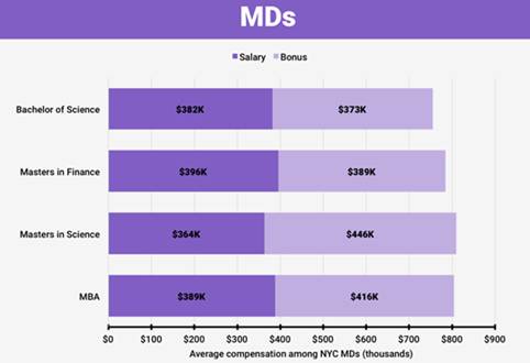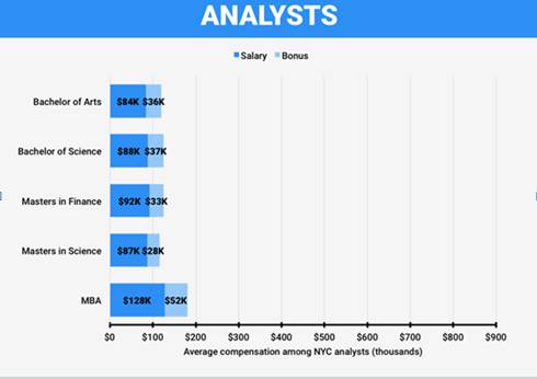分析师阶段当你还是一名菜鸟分析师的时候, MBA学位给你的帮助的确很大,工资和奖金一共18万美金,远超其他群体。金融硕士(Masters in Finance)则微微感到失望,因为你的收入和理科学士(Bachelor of Science)相差无几,都是12.5万美元。当然,最惨的是理科硕士(Masters of Science),虽然学位更高,但收入还不及本科学弟学妹。经理阶段通过几年辛苦打拼,你终于到了经理级别,薪酬也有了显著提升。这时你会发现,MBA学历依旧是你最好的法宝,在别人还没跨过20万年薪门槛时,你的收入已到了22.5万!这时,最悲惨的依旧是理科硕士,依旧比本科学弟学妹们少拿1.8万美元。金融硕士的境况稍微好转,排名仅次于MBA。副总裁阶段熬到这一步,理科硕士终于成功逆袭!年薪超过MBA,迈过30万的门槛。在这个级别,最“悲催”的是金融硕士,薪酬垫底,而且少于本科生。总经理阶段在这个级别,理科开始吃香。理科硕士薪酬继续霸占榜首位置,总收入水平超过50万美元。理科学士后来居上,薪酬超过了MBA。金融硕士依旧垫底。董事总经理阶段到了最高级别,不管什么学历,大家的薪水其实差不多。但理科硕士依旧是人生赢家,高达80.5万美元。不过为什么数据好像少了一行?为什么这个级别的调查没有文科学士?因为缺少足够的数据样本…(我们似乎发现了什么)选对公司很重要不仅是专业和学历,如果你选错了东家,对薪酬的影响也很大。在今年5月底,Emolument对伦敦1433名投行MD和Associate进行了调查。结果显示,摩根大通MD的平均年薪92万英镑,高居榜首, 比第二名摩根士丹利高出35%。如果你是一名小小的Associate,在德国商业银行薪水为7.5万英镑,差不多只是摩根士丹利同行们的一半。估计很多和我一样的金融民工要开始吐槽了,你晓不晓得做到MD有多难?我当然知道,但是你晓不晓得MD工资是分析师的10倍!所以,努力吧,少年!不仅仅为了薪水,更是为了保住饭碗…外媒数据显示,为了提高利润,高盛、摩根大通和摩根士丹利将划拨用于上半年员工薪酬的资金缩减了17%,而其中高盛员工平均薪酬减少29%,摩根士丹利减少12%。不仅如此,从2008年金融海啸以来,全球最大的数家银行已缩减了超过50万个工作岗位。而“股灾”之后国内金融圈同样有一波不小的裁员。特别是私募,“股灾”加上清洗,从业人员直接锐减12.67万人!