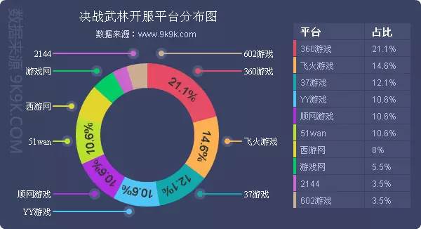 点评:本周《决战武林》开服总数较上周再次下降16.9%,其在37游戏等多个平台的开服频率均有所下调,新增分布占比平台2144、602游戏。