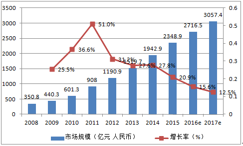 中国在线旅游交通预订市场近 年来维持稳定发展,2014年市场规 模达到1942.9亿元人民币,同比增 长27.8%。中国在线旅游交通预订市场增速将趋于平缓,预计2017年市场规模达到 3057.4亿元人民币,较2014年增长 57.4%。