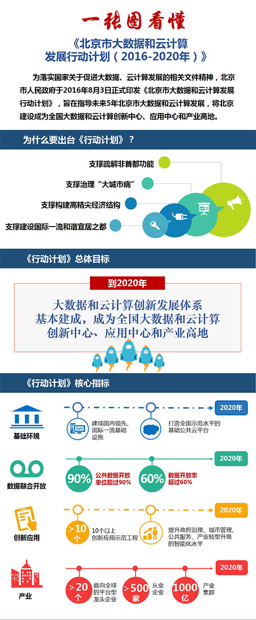 一张图看懂北京大数据云计算发展计划–信息图 北京市发布《北京市大数据和云计算发展行动计划(2016-2020年)》(以下简称《行动计划》)。《行动计划》明确提出到2020年,北京市大数据和云计算创新发展体系基本建成,成为全国大数据和云计算创新中心、应用中心和产业高地的战略目标。 更多阅读:2016年互联网行业十大预测:云计算、大数据、人工智能AWS技术峰会 2018 上海站启航 预计将有50多场技术论坛、6000多专业人士参会,创AWS技术峰会中国之最微软:预测2025年网络空间:大数据预见未来(附完整版下载)李克强:“十三五”期间要促进大数据、云计算、物联网广泛应用CIA:中情局CTO谈大数据应用IBM:智能数据中心的四个特征大数据的红与黑:哈瑞尔·柯岱石眼中的大数据MarketWatch:2013年云计算和大数据击倒社交媒体京东首席科学家:云计算、大数据撬动购买力MarketWatch:2013年科技IPO仍成谜 云计算和大数据成热门分析称亚马逊已进化成一家大数据公司工信部:2025年上半年集成电路设计收入2022亿元,同比增长18.8%CIO关注:未来五大关键技术2020第二届全球制造业数字化转型国际峰会2018中国制造业数字化转型国际峰会重磅来袭
