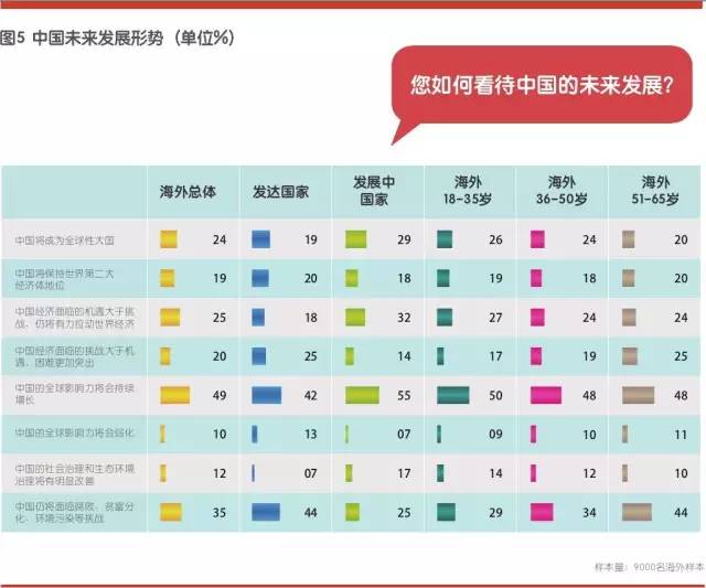 发展中国家受访者对中国未来发展形势的看法更为乐观,海外年轻群体也对中国发展形势持更加积极的态度。