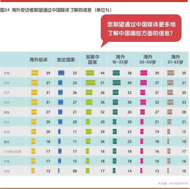 海外受访者最希望通过中国媒体来了解中国文化、科技领域的信息