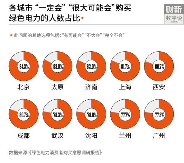 不过,若绿色电力的成本要比传统电力高,消费者又是否愿意承担的这项费用?《报告》基于一项在7月下旬至8月上旬进行的问卷调查,对北京、上海、广州、太原、济南、沈阳、西安、兰州、程度、武汉,十个城市共3000名消费者进行调研,探讨社会公众对绿色电力的认知和购买意愿。该调查由中国循环经济协会可再生能源专业委员会委托益普索市场咨询开展。