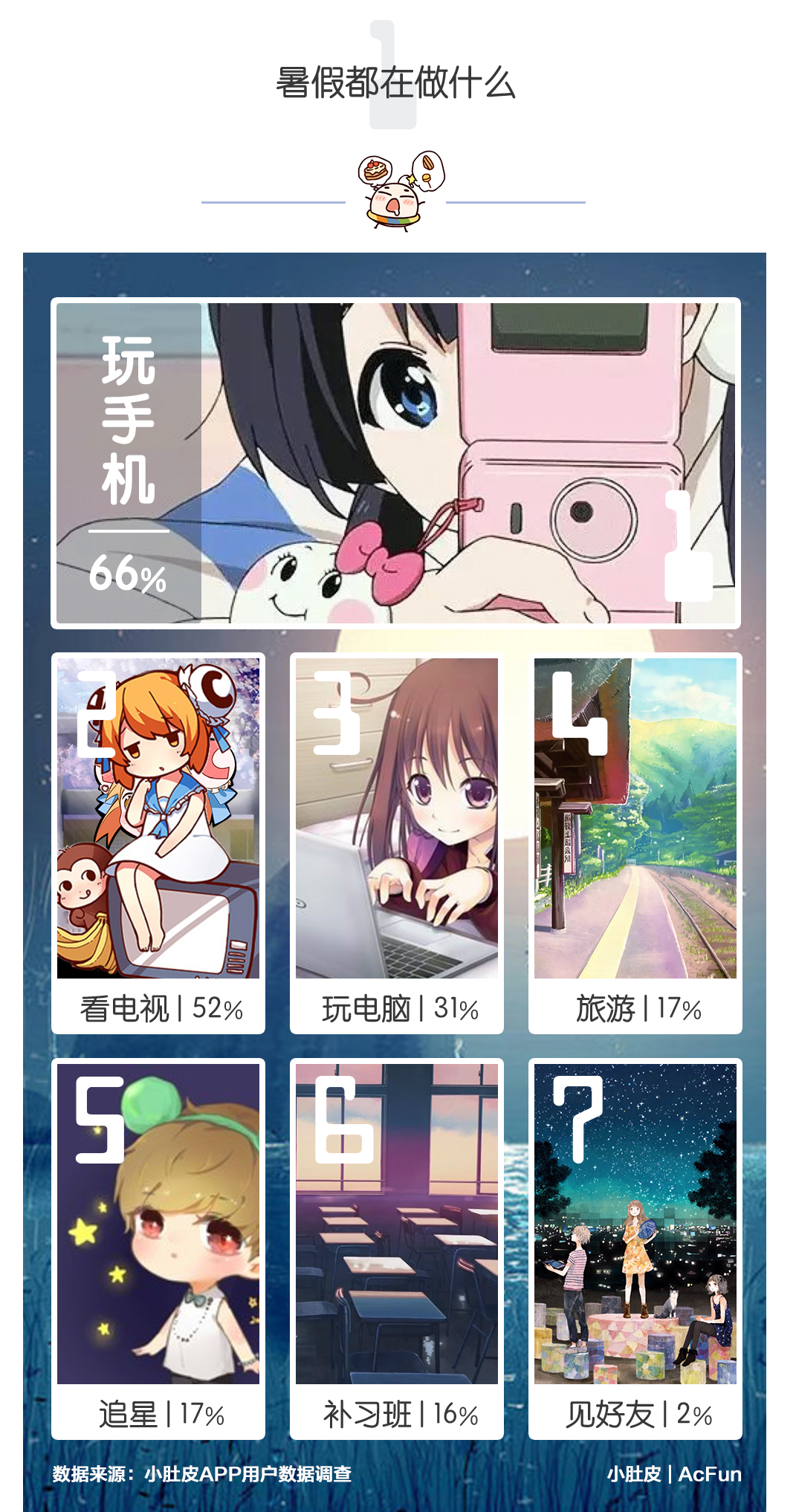 暑假的额度终于用完了!玩high了的”熊孩子们”也在都归校了!你是不是也怀念那个看着动漫吃雪糕,聊着手机听音乐的慢生活!而今暑假离80/90已经越来越远,充实的假期也从还珠格格,西游记变成了小肚皮,QQ,A站!这就是你不懂的00后!快来感受一下她们是怎么度过这个欢快娱乐的暑假吧~