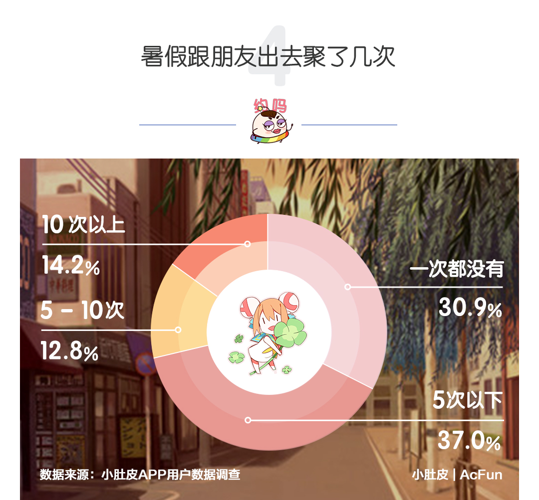 用“宅”这一个字来形容00后再适合不过了。接近三分之一的小盆友表示整个假期都没有和朋友聚会过!另外三分之一的小盆友仅见了五次以下…啊喂你们确定你们还没老么~
