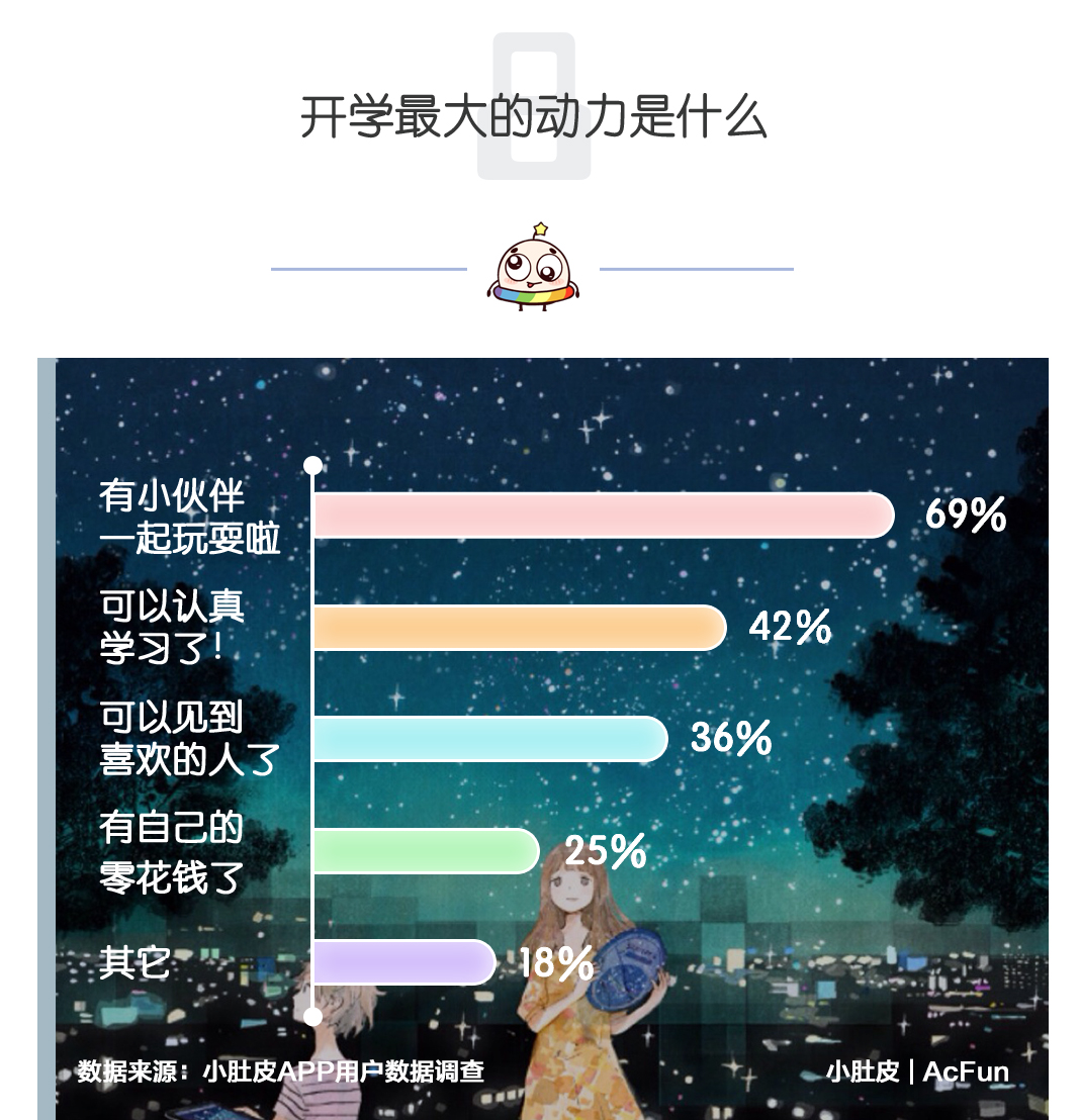 大多数00后就期待着开学后和小伙伴们一起浪到飞起了,毕竟独生子们都憋了一暑假,怪辛苦的呢!另本阿姨惊讶的是,超过40%的小盆友们竟然期待着认真学习!不亏都是根正苗中的好少年们!