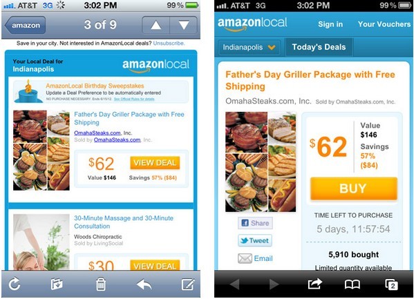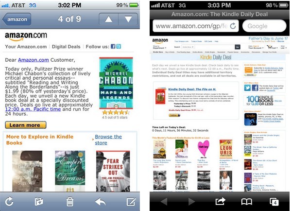 一般来说,对于要在手机这个小屏幕上显示的广告有一些基本要求:字体和图片够大,便于点击的链接按钮···友好的邮件内容界面更容易吸引消费者。这一点,亚马逊已经做到了。