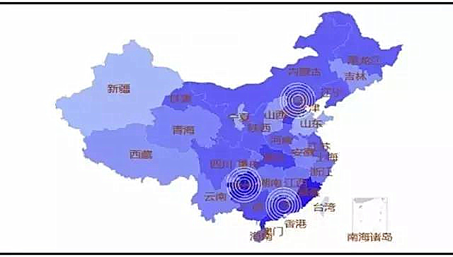 根据各地方大数据应用现状,可构建大数据产业区域分布图。目前大数据产业集聚趋势凸显,形成三大辐射区域,分别是京津冀、珠江三角及以贵州为中心的中西部。