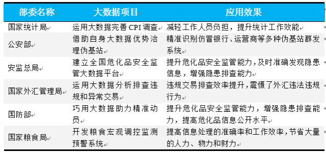 各部委建设的大数据项目通常都与各自部门职能相关,减少了人力、财力的浪费,大大提高了办公效率。