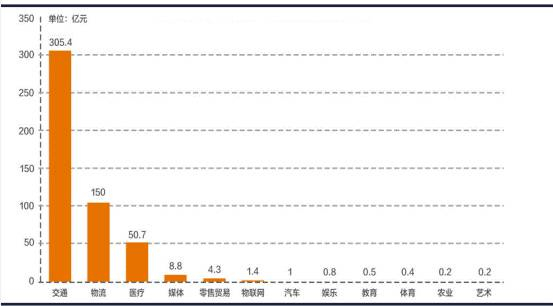 大数据应用在行业中显得最为广泛和活跃,2016年上半年,医疗大数据行业发生投融资事件为18起,交通大数据行业投融资金额为305.4亿元。