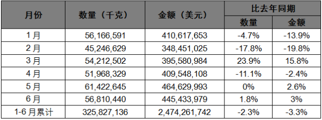 2016年1-6月我国发动机零件出口金额达24.74亿美元,与去年同期相比下降了3.3%。