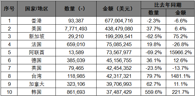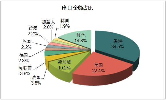 香港和美国是我国燃气轮机的前两大出口市场,对这两个市场的出口金额分别占我国该产品出口总额的34.5%和22.4%。