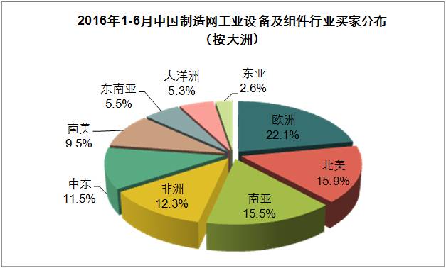 二. 2016年1-6月中国工业设备及组件行业出口分析