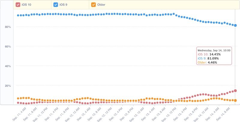 此后,iOS 10安装过程好像没有再出什么问题,几乎没有用户报告安装过程出现问题,表明用户可以安全、稳定地下载和安装这款更新包。随着周末来临,iOS 10普及率可能会快速上涨,因为人们将有时间下载、安装更新包。另外,iPhone 7将于周五发售,运行iOS 10的新设备会多出数百万部。