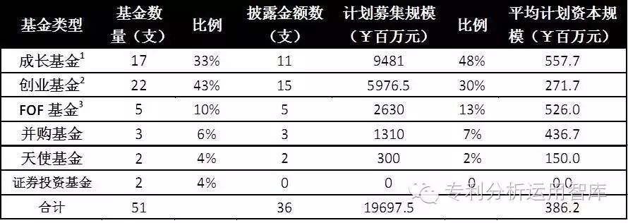 本文选取了近十年来对创投基金中与拥有自主知识产权相关的高新产业,或以拥有核心技术和知识产权的科技型中小企业为投资对象的基金,或用于推动技术、专利等科技成果的实施转化和产业化的项目的创业投资私募基金为统计样本,并对这些基金的数量、计划募集规模、类型以及投资领域进行了梳理,以期能够为我国知识产权基金的合理化运作提供参考。