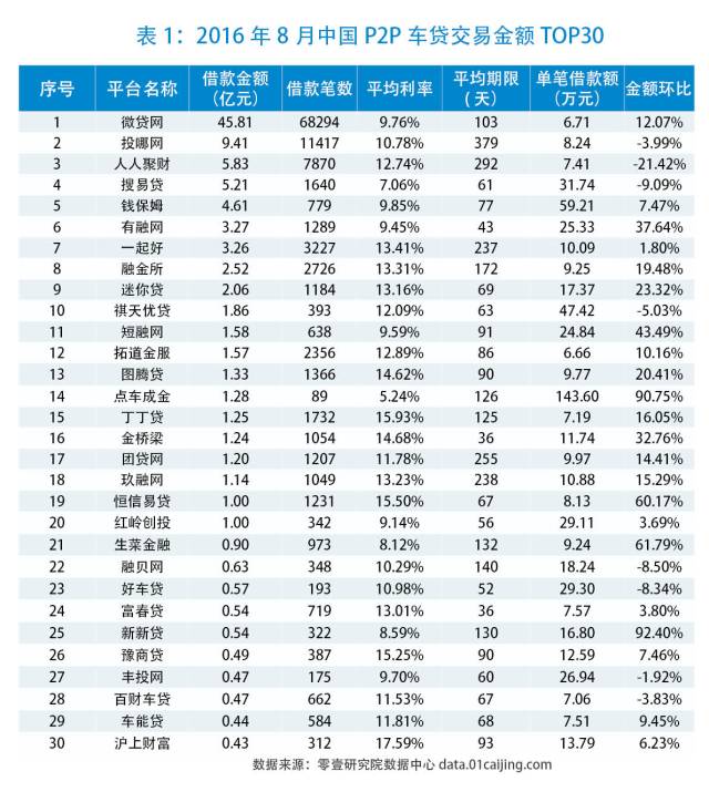 注:由于数据难以获取或资产类型无法判断,部分车贷规模较大的平台未纳入本表。