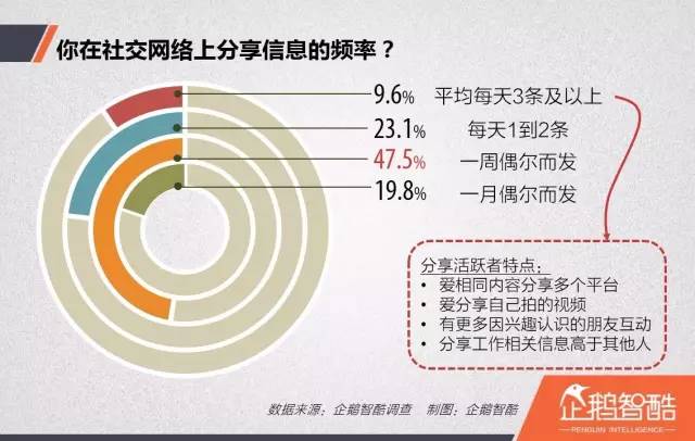 这个结论来自企鹅智酷近日发起的社交分享调查,共有全国6680名智能手机用户参与。他们的回答,展现出了一个社交网络的分享世界面貌。