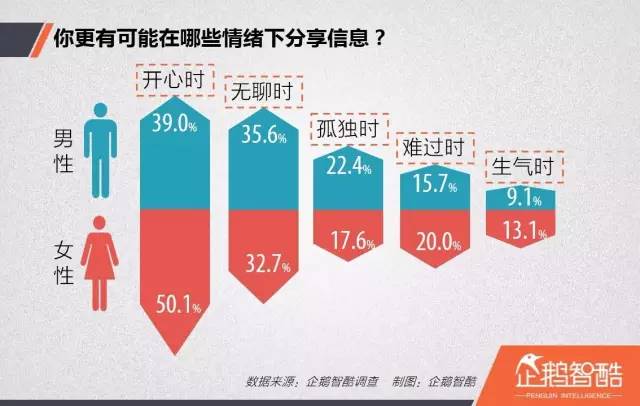而男性则比女性更容易在无聊和孤独时进行分享。