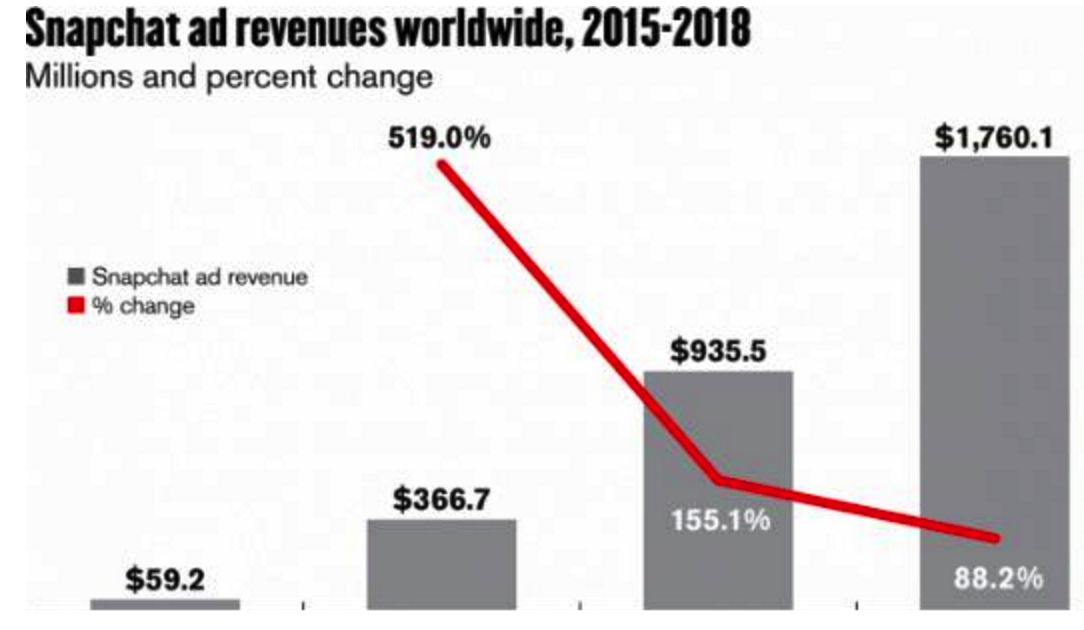 据eMarketer估测,到2018年Snapchat的广告销售将达到10亿美元以上。