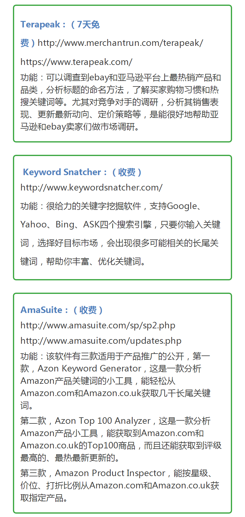 美国亚马逊产品与市场研究软件工具 更多阅读:infoscout:2014年美国黑色星期五最畅销产品Top10车联网深度报告:美国汽车后市场研究大数据研究常用软件工具与应用场景AWS技术峰会 2018 上海站启航 预计将有50多场技术论坛、6000多专业人士参会,创AWS技术峰会中国之最ForeSee:2012年美国电子商务消费者满意度调查报告Crunchbase:2018年中国初创企业已经获得938亿美元投资2016上半年10种最酷的大数据产品后社交网络时代的投资方向:数字健康产品资深产品经理干货:关于天猫专辑商品浏览的产品设计思路经济衰退或增长放缓时,哪些互联网产品、服务、模式会借力上扬?从产品、运营和推广看如何获得APP Store推荐手机端VR产品成为厂商吸引消费者关注的契机2014年Q1中国手机安全产品市场调研人人都是昏析师:中国式产品产品用户体验的层次