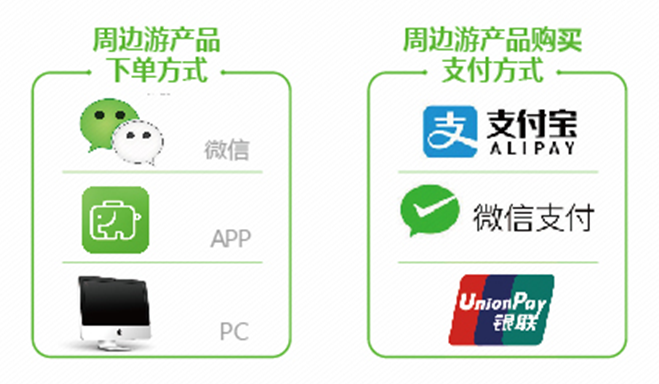 一块去发现,目前周边游产品下单方式中,微信(H5、公众号)的预订方式成主流,网站下单量低至谷底;此外,由于周边游出行群体多为千禧一代(1984-1995年出生),与互联网接触较多,因此线上支付成为主流,银联、线下支付等传统方式退位。