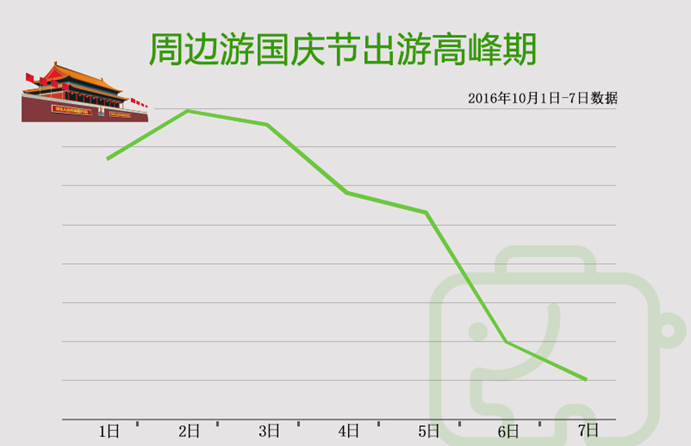根据专注于周边游的一块去旅行网基于其平台大数据发布的《2016年国庆周边游出行报告》显示,今年国庆期间,一块去周边游度假酒店的订单量是去年的2.7倍;其中,国庆出游高峰集中在1-3日,5日后出行人数开始逐渐下降。