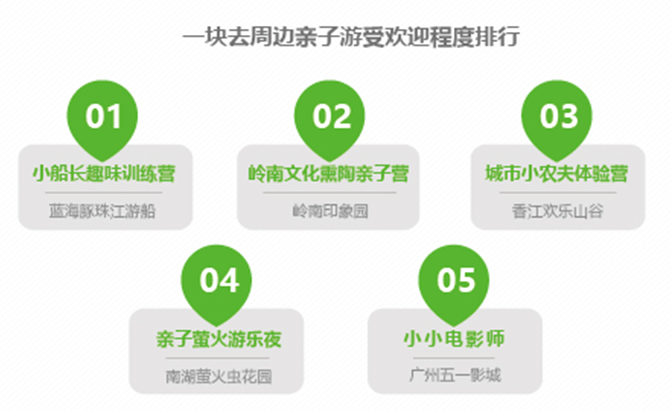 放假期间周边游出行多以家庭为单位,但是针对拥有3-7岁儿童的家庭来说,长途旅行不方便,因此时间长度为单日的亲子游活动走俏。