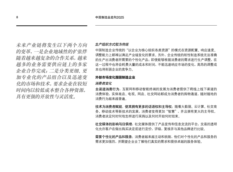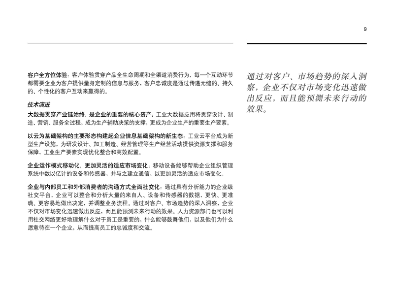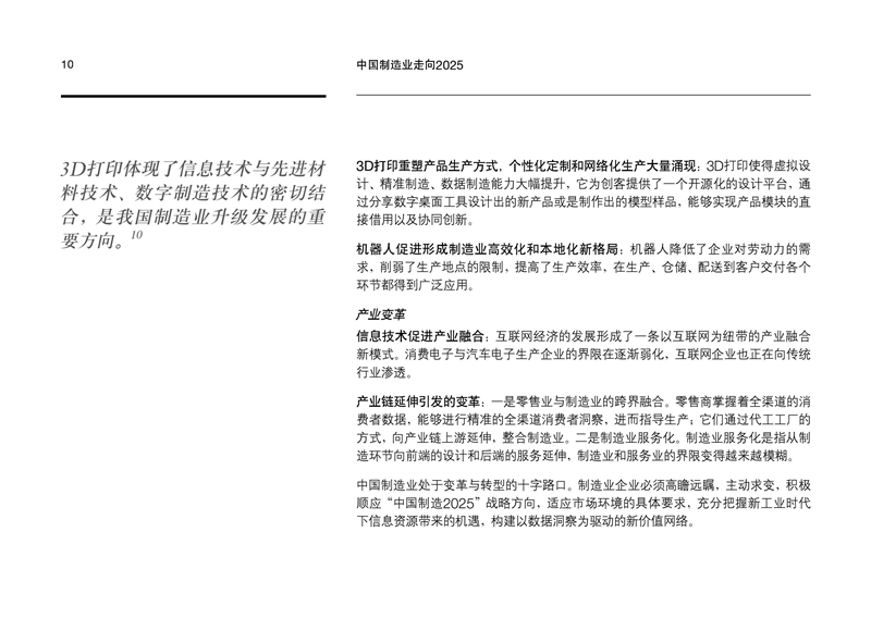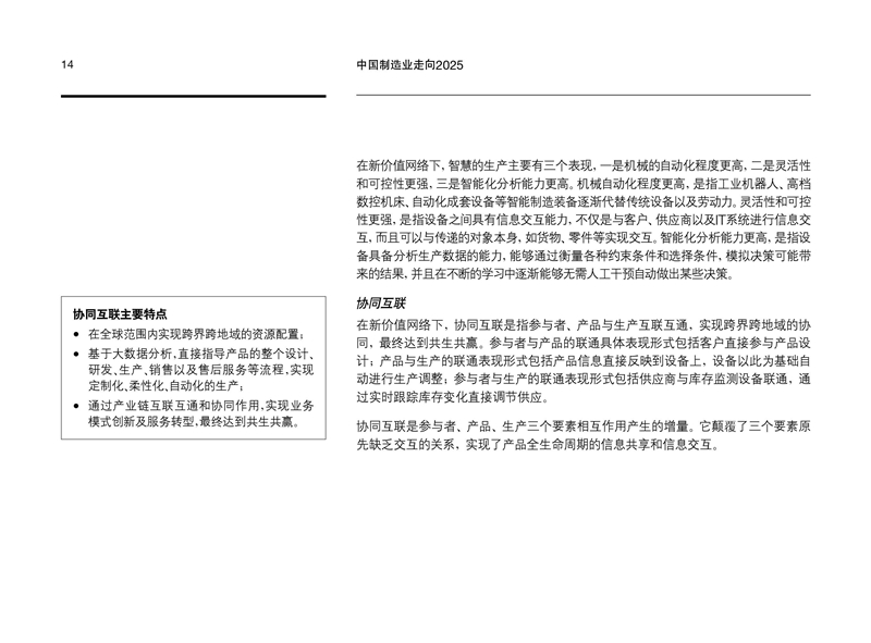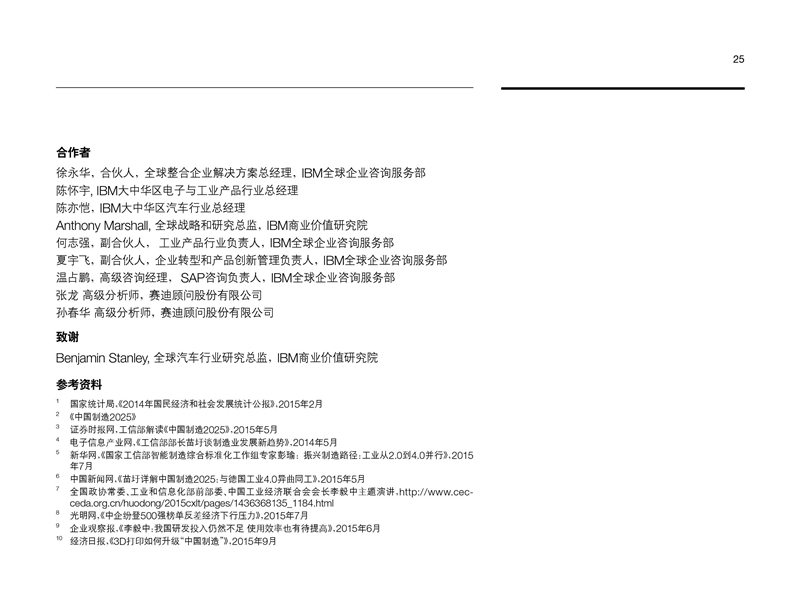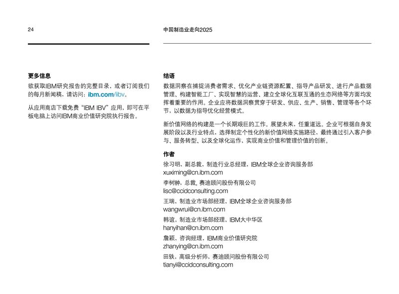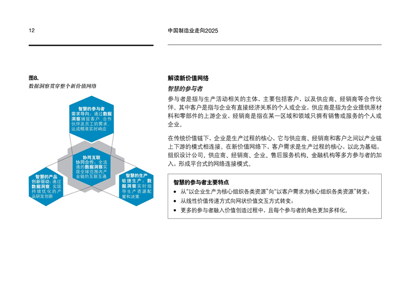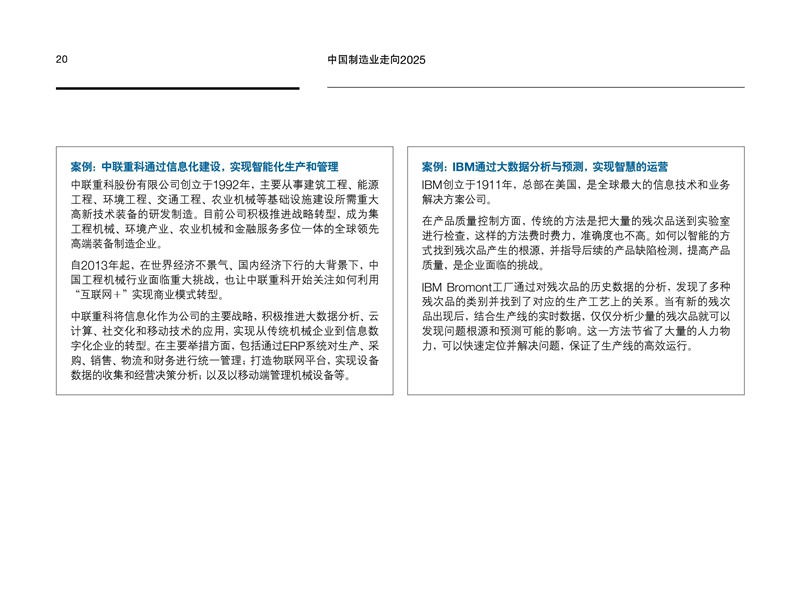 IBV:中国制造2025 大数据驱动新价值网络 伴随“中国制造 2025”的出台,制造业必须高瞻远瞩,主动构建以数据洞察为驱动的新价值网络。而创造价值过程中的参与者、产品和生产三个要素,是如何被赋予”智慧的”新内涵?又有什么转型路径供参考呢? IBM 商业价值研究院(IBV)将在以下报告中为您揭晓。 更多阅读:IBM:解密零售行业的大数据趋势全球视野下的工业4.0和中国制造2025图解《中国制造2025》有哪些扶持政策?中国制造2025还需向德国工业4.0学习什么?工信部规划司全面解读“中国制造2025”IBM:AI时代的汽车行业IBM:抓住网络安全红利IBM:商业银行数据资产管理体系建设实践报告IBM智慧的分析–数据信息图IBM:研究显示消费者越来越善于筛选和分析数据IBM:大数据的行业应用场景–信息图IBM:社交媒体挑战企业声誉IBM:未来三年全球将有40%的劳动力必须学习新技能IBM专家观点: 从 +AI 到 AI+,谈企业如何应用 ChatGPT 技术IBM:2023年X-Force威胁情报指数
