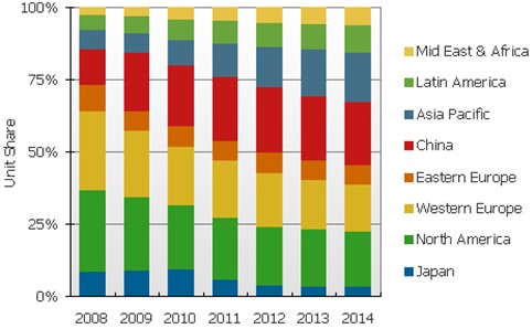拥有LED背光的LCD电视机出货量占LCD电视机总出货量的56%,而去年第四季度为51%。等离子电视机的出货量同比下滑18%,而去年第四季度同比下滑8%。