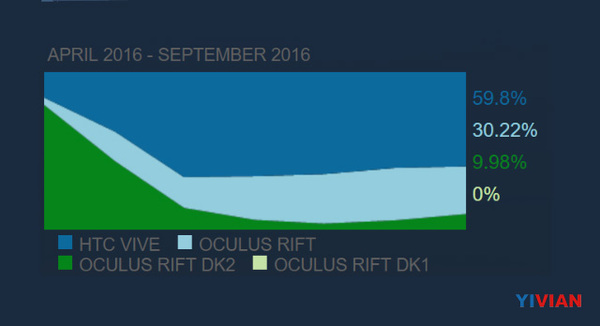 Valve已经公布了Steam平台的9月份硬件及软件调查数据,而HTC Vive的市场份额也进一步下跌,这是在Oculus解决了Rift缺货问题并开始快速铺货后的第四个下跌。