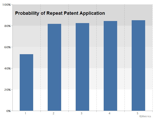 这张再次申请专利的概率也说明了问题,申请专利越多的公司其再次申请专利的概率则越高。