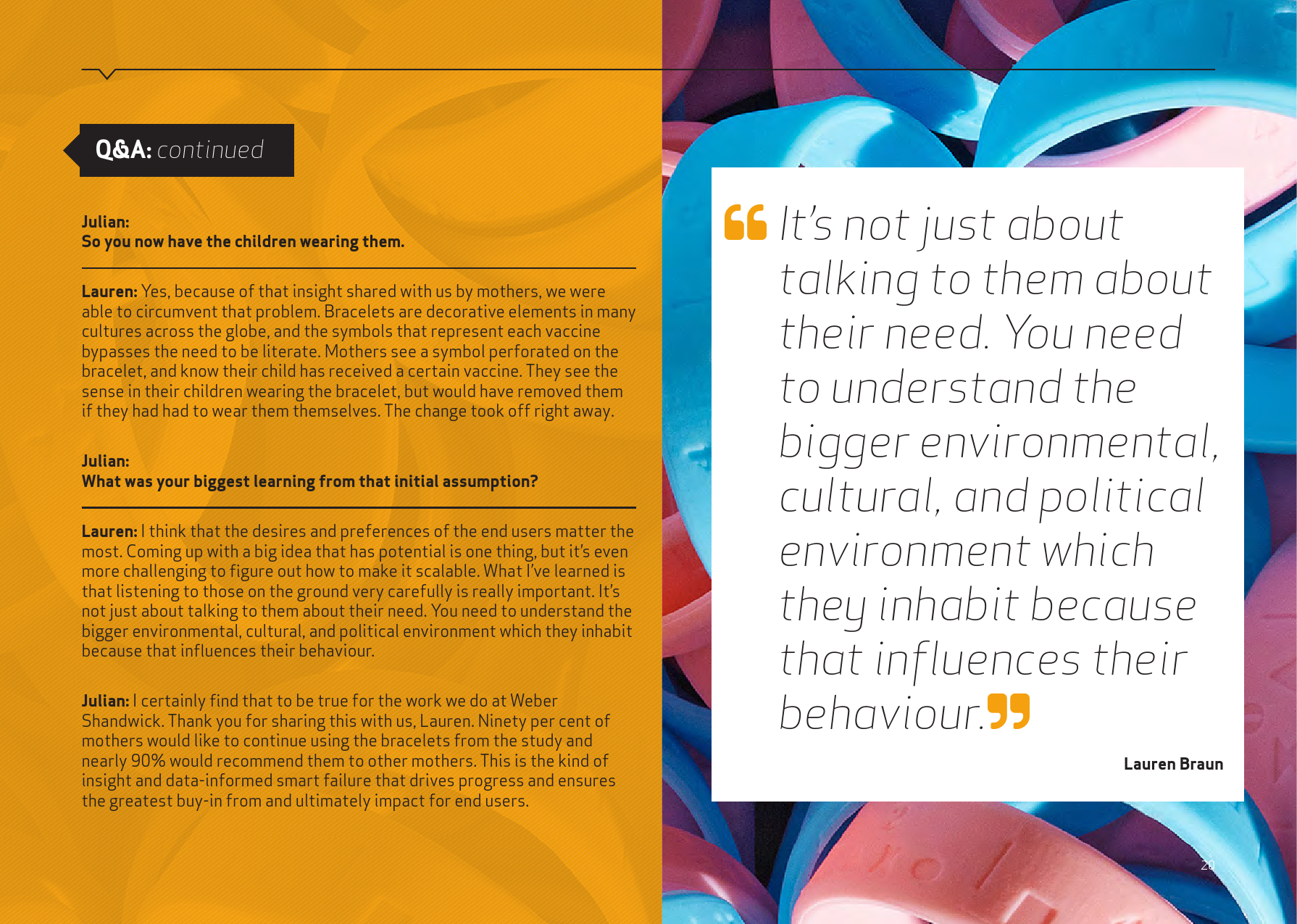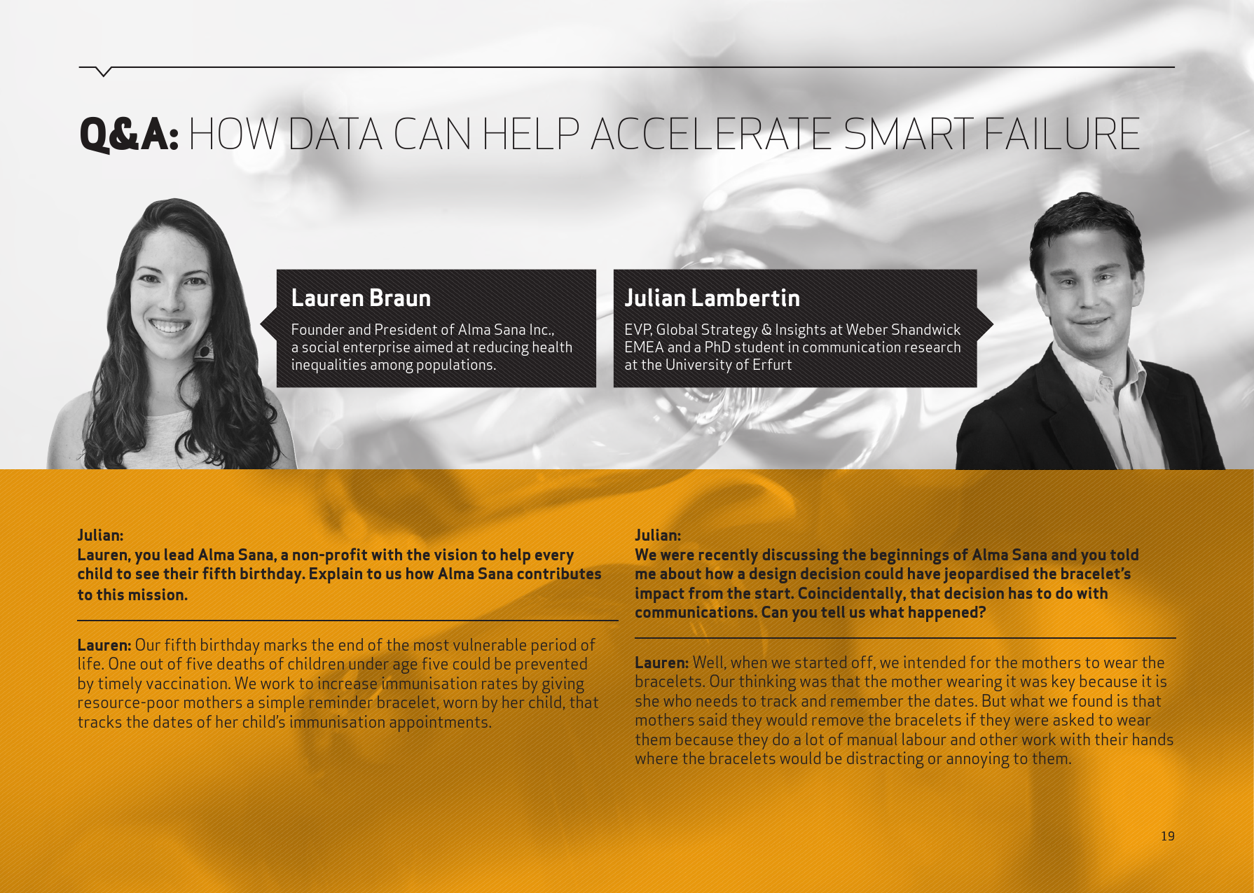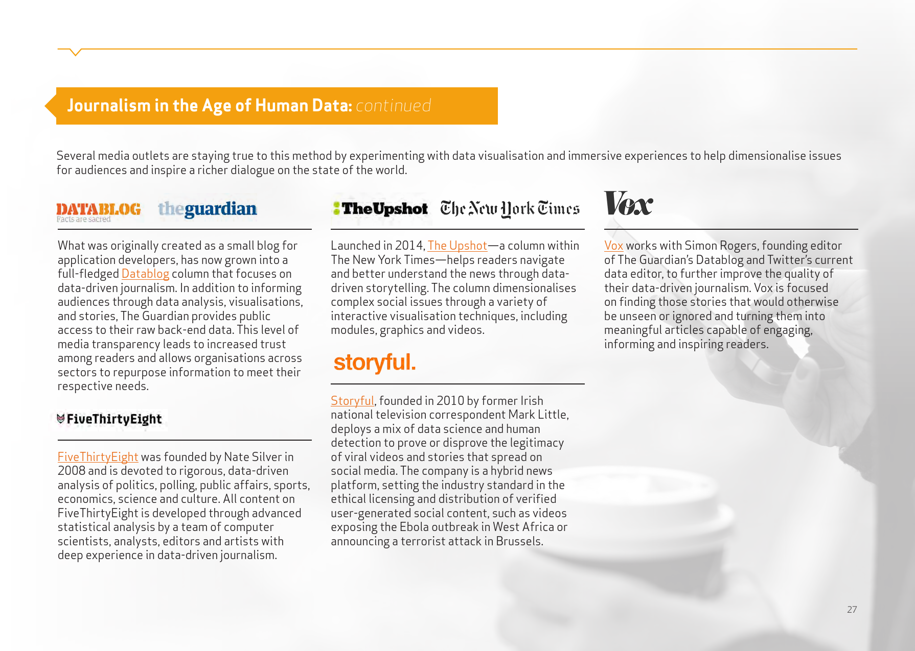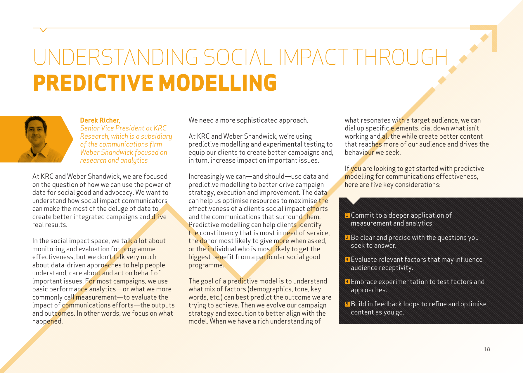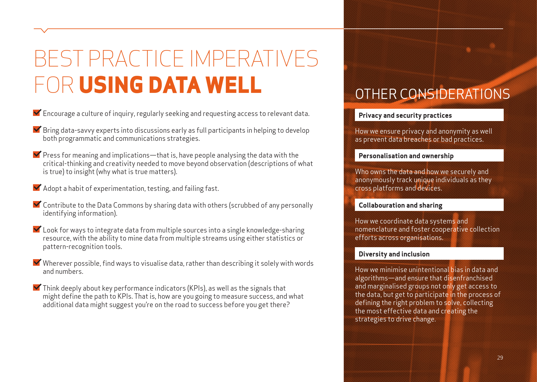 《目标驱动的数据》报告提出了“影响工程师”的概念,这些专业人士能够深入理解企业社会责任影响、国际发展与可持续性实践和趋势,能够将数据科学知识与传播有机结合在一起。该报告还展示了对万博宣伟若干专家进行的深度采访,其中包括一些企业社会责任专家,他们介绍了关于目标驱动数据相关话题的观点,同时强调了人类独创性对解读和赋予数据意义用以服务推动社会化以及环境发展进程所起的重要作用。