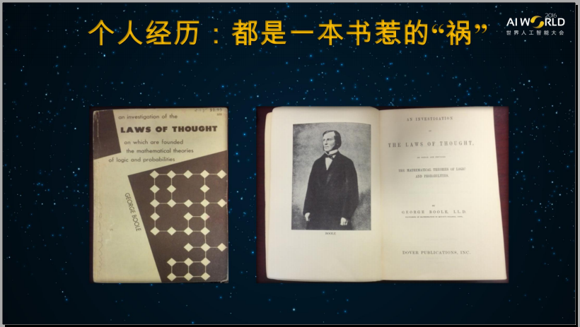 所有的起源都可以追溯回古希腊亚里士多德的三段论逻辑,中间的发展经过了西班牙人Llull(后来从文献中发现的,现在巴萨罗那还有两个大学是以Llull的名字命名的。2011年之前我不知道这个人,2011年去巴塞罗那参加国际人工智能联合大会IJCAI,他们给我一本小册子,这本小册子专门介绍Llull在人工智能领域的贡献)。他受亚里士多德的影响,提出Tree ofScience,后来又影响了莱布尼茨。在他和莱布尼茨中间还有一个Hobbes,就是著名的《利维坦》的作者,他第一个提出了思维的机械论,怎么用机械的方式来做推理。