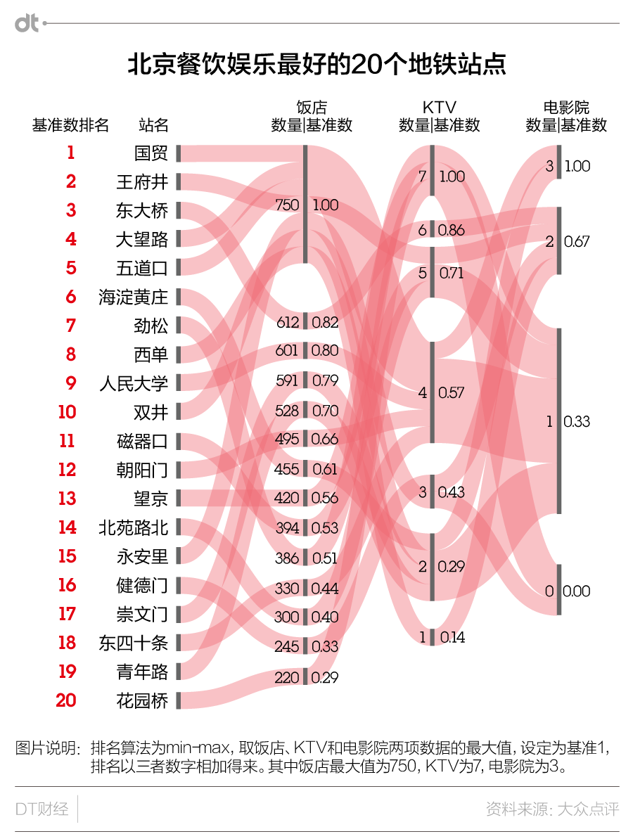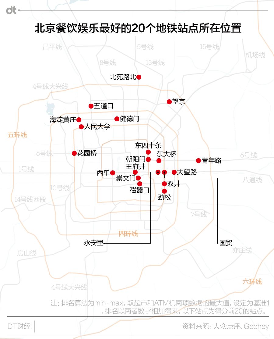 最为显眼的当属地处五环之外的北苑路北站,这座以“睡城”名满京城的站点,凭借300家饭店、5家KTV和1座电影院顽强地进入了榜单前十,令DT君刮目相看。