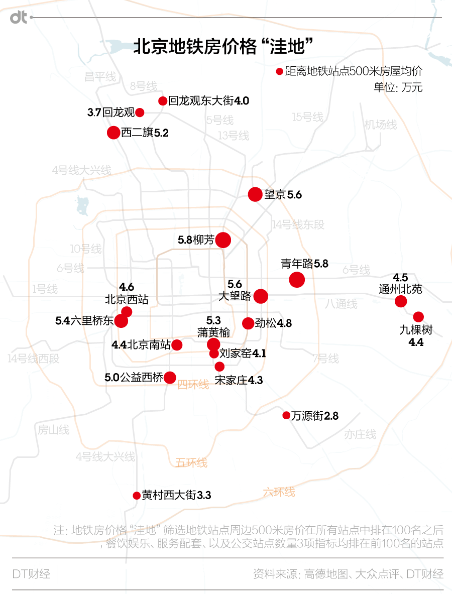 DT君根据“地铁1公里”数据交叉综合分析,在北京众多站点中捞出了一些配套好生活便利,但地铁房价还没有那么贵的“洼地”。