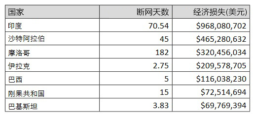 有一点很重要,必须指出。这一分析只涉及到对GDP的经济影响,没有涵盖因数据接入不畅所导致的税收流失、对劳动生产率的影响、与网络故障相关的业务拓展壁垒,或者因网络中断而引起的投资者、消费者和商业信心丧失的成本。因此,24亿美元是一个保守估计,可能低估了实际的经济损失。